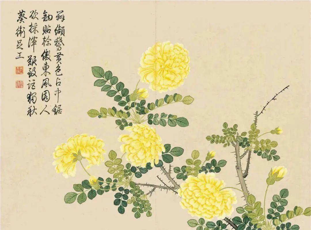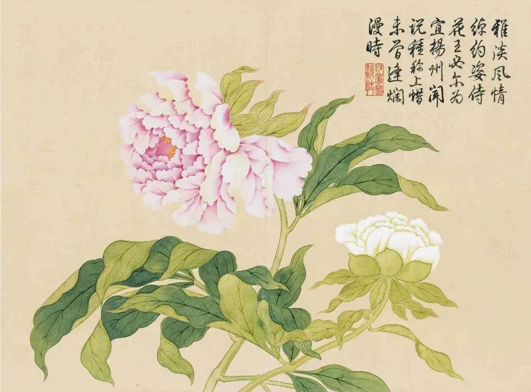 钱维城的花卉画,每一幅都仿佛是大自然的精心雕琢,既展现了花卉的自然之美,又融入了画家的深厚情感与艺术造诣。他笔下的花卉,种类繁多,形态各异,无论是雍容华贵的牡丹,还是清雅高洁的梅花,亦或是清逸脱俗的菊花,都被他描绘得栩栩如生,令人叹为观止。