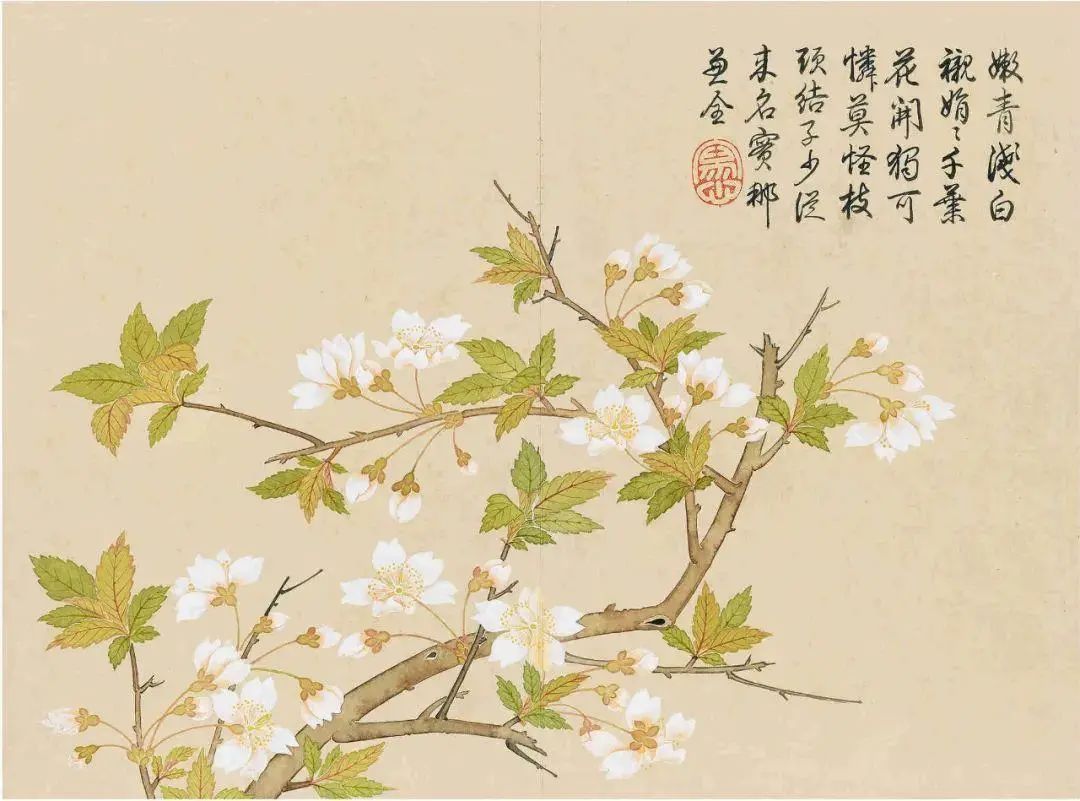 在构图上,钱维城同样展现出了高超的技艺。他巧妙地运用了折枝花卉的形式,将画面的主体突出,同时又不失整体的平衡与和谐。每一幅花卉画都仿佛是一个精心布置的小景,既有着独立的审美价值,又能够与其他作品相互呼应,共同构成一个和谐统一的整体。