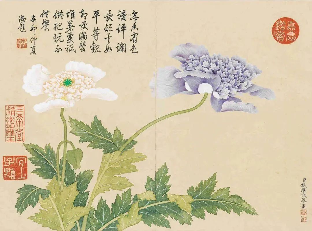 钱维城的花卉画不仅具有极高的艺术价值,还具有重要的历史和文化价值。它们记录了钱维城作为宫廷画家的辉煌成就,也体现了乾隆时期文化的繁荣和发展。这些作品不仅是精美的绘画艺术品,更是一段历史的见证,让我们能够穿越时空,感受到那个时代的艺术氛围和文化底蕴。